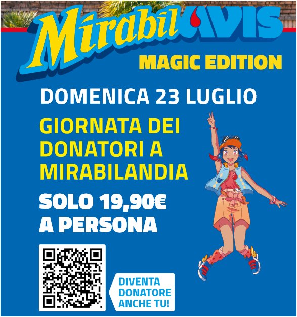 Domenica 23 luglio torna MirabilAvis, l’appuntamento nel Parco divertimenti più grande d’Italia dedicato alle donatrici e ai donatori italiani – di Avis o di qualunque altra associazione o federazione del dono – purché provvisti di un tesserino identificativo in corso di validità, ma anche ai loro familiari e amici. Per tutta la giornata Avis sarà presente a Mirabilandia con alcuni Info Point per rispondere a tutte le domande e curiosità sulla donazione di sangue e plasma.